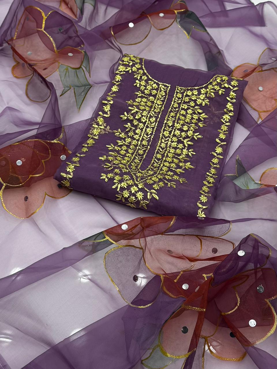 Embroided gota work organza shirt